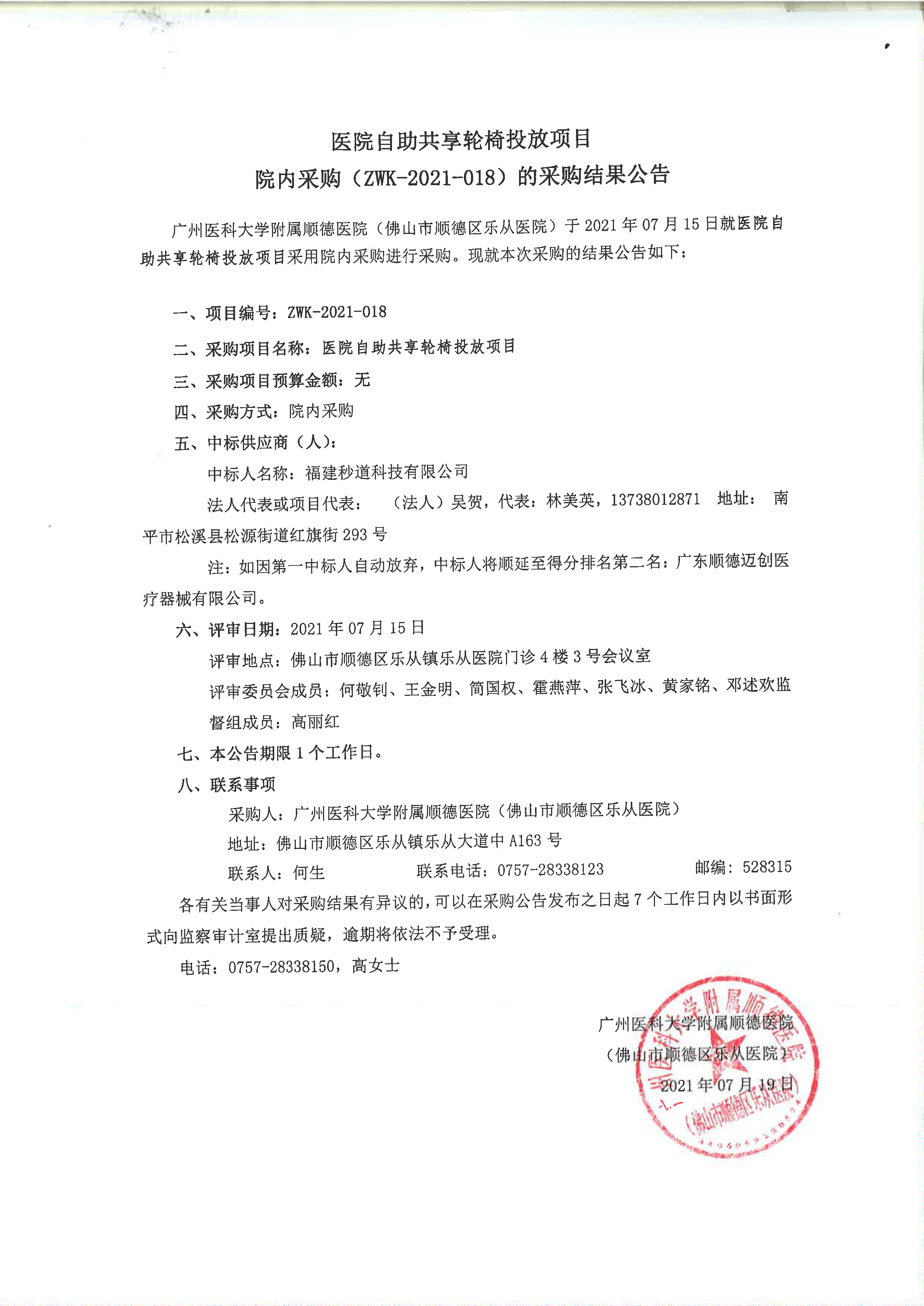 单位:佛山市顺德区乐从医院