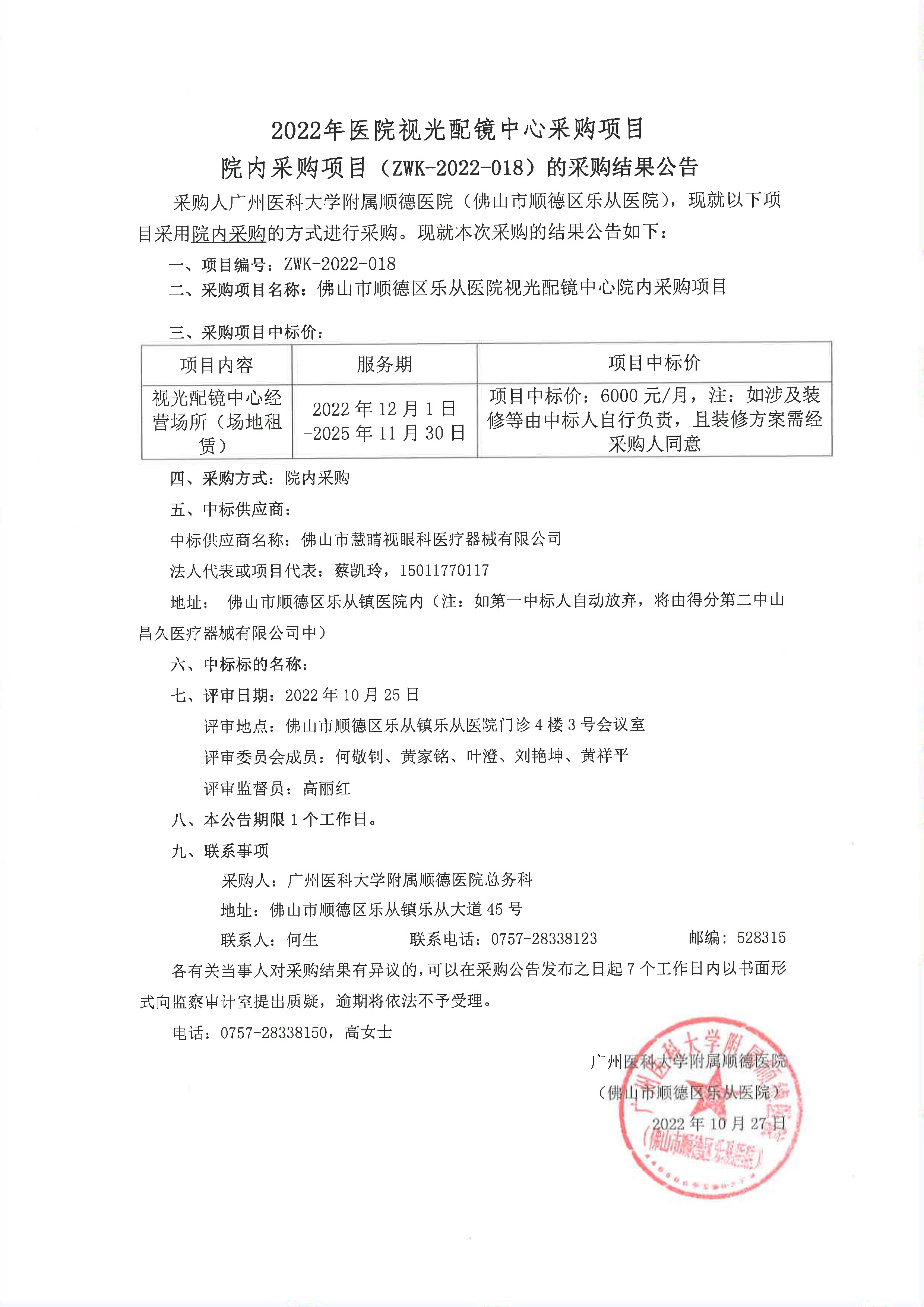 单位:佛山市顺德区乐从医院