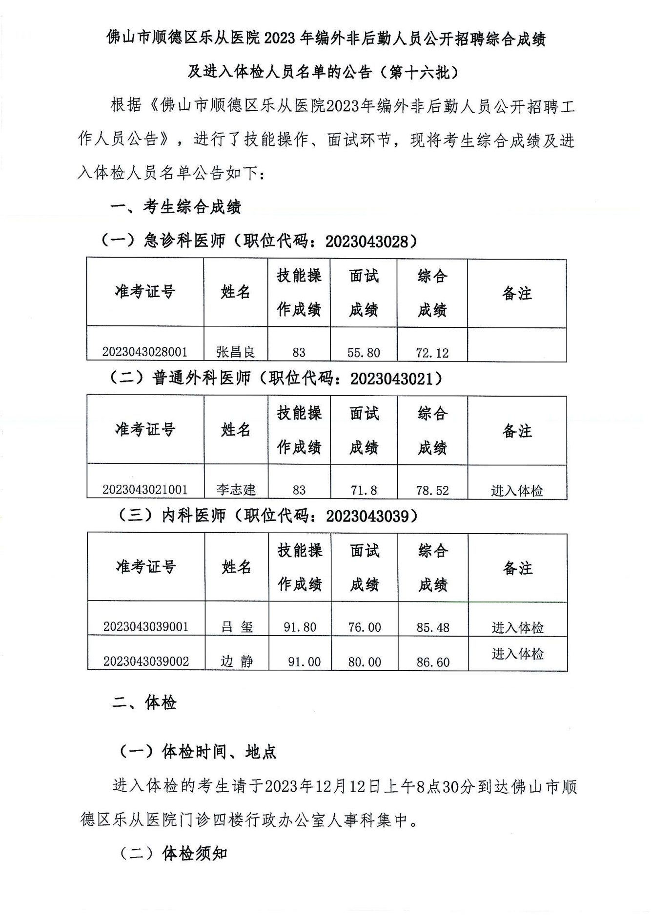 上一篇: 乐从医院2023年编外非后勤人员公开招聘综合成绩及进入体检人员名单的公告(第十七批)