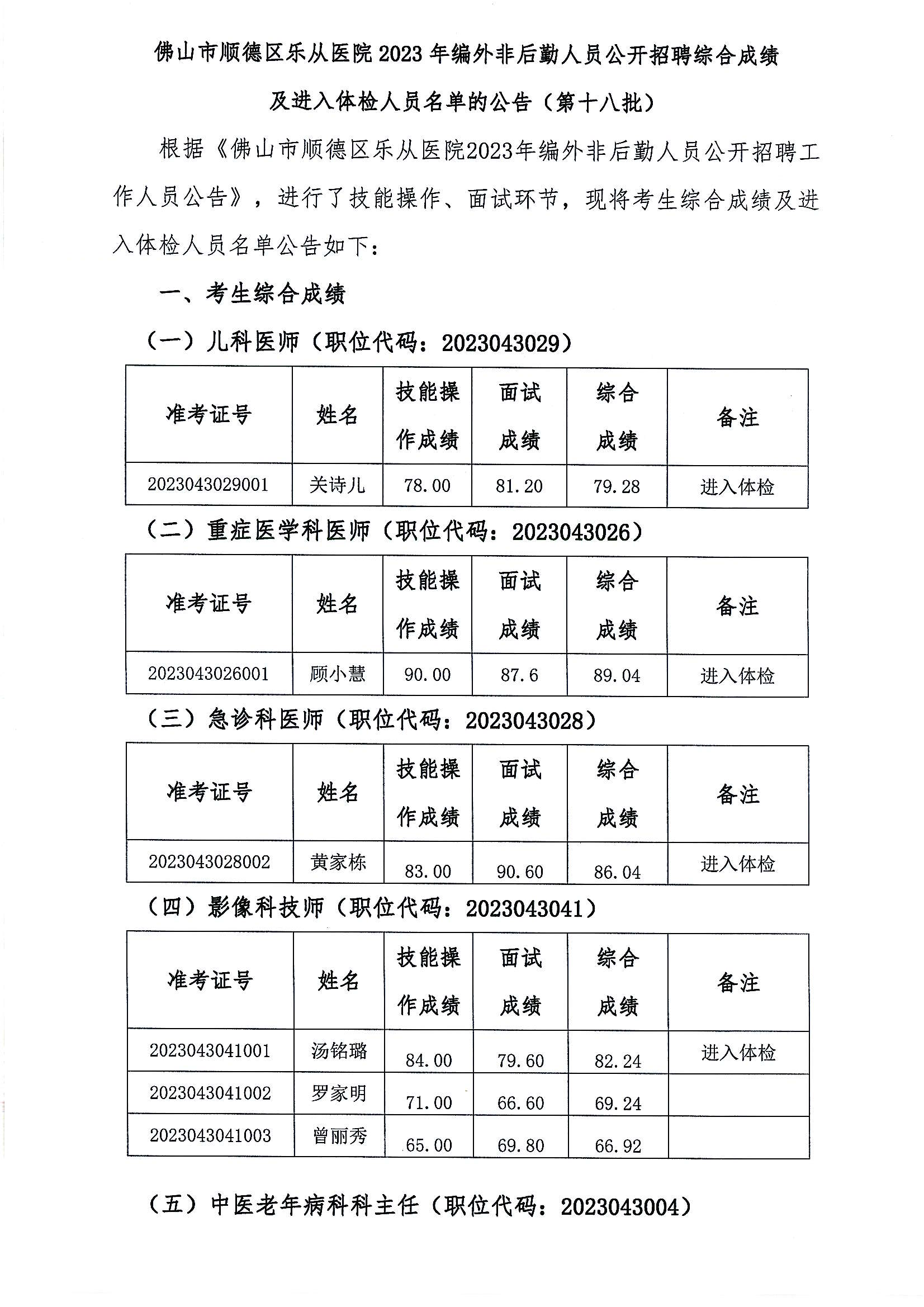 上一篇: 乐从社区卫生服务中心2023年编制外卫技工作人员招聘综合成绩及进入体检人员名单的公告