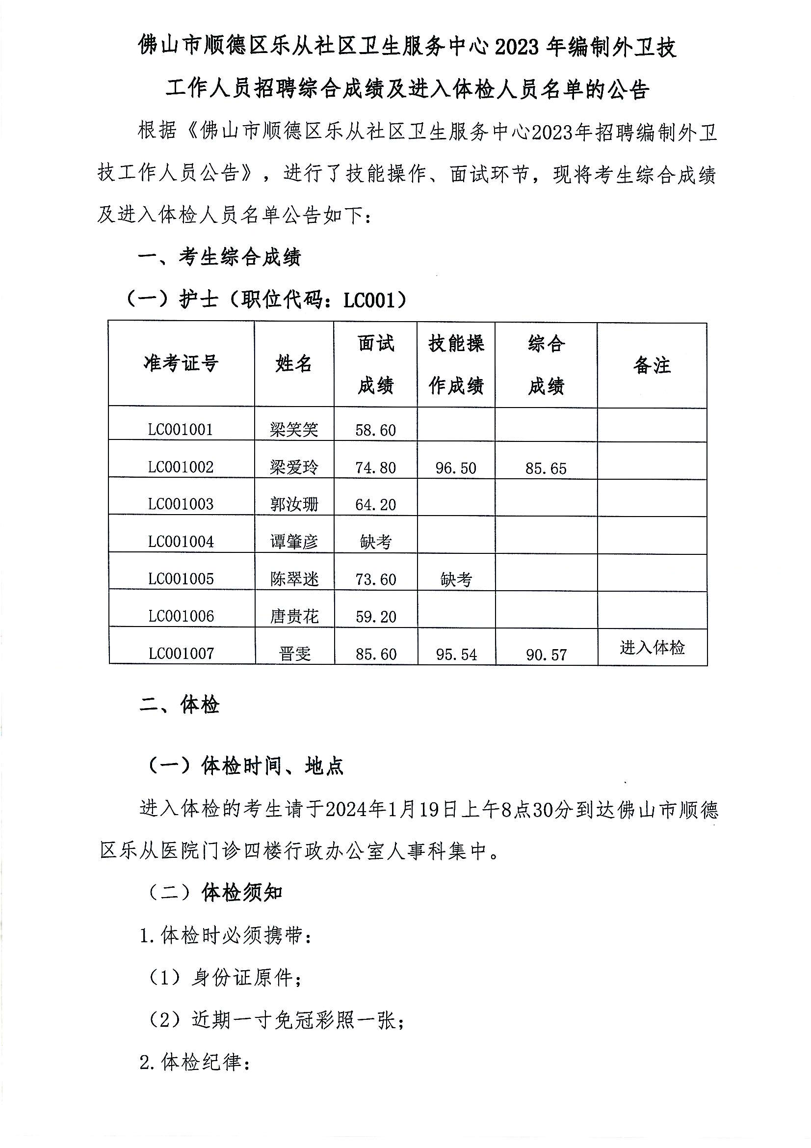 下一篇: 乐从医院2023年编外非后勤人员公开招聘综合成绩及进入体检人员名单的公告(第十八批)