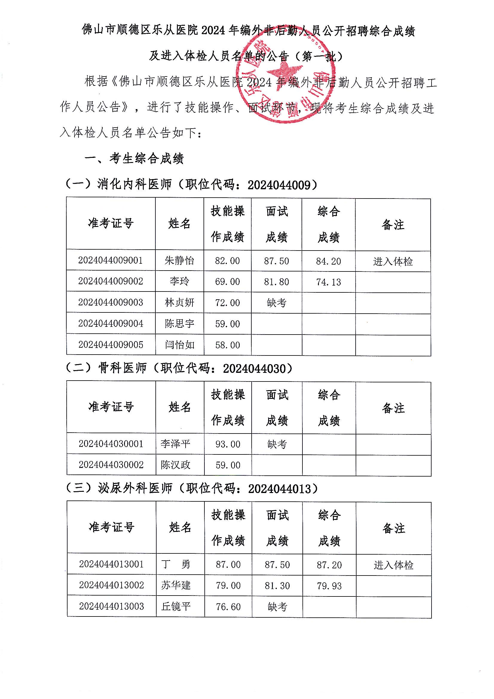 上一篇: 乐从医院2024年编外非后勤人员公开招聘综合成绩及进入体检人员名单的公告(第二批)