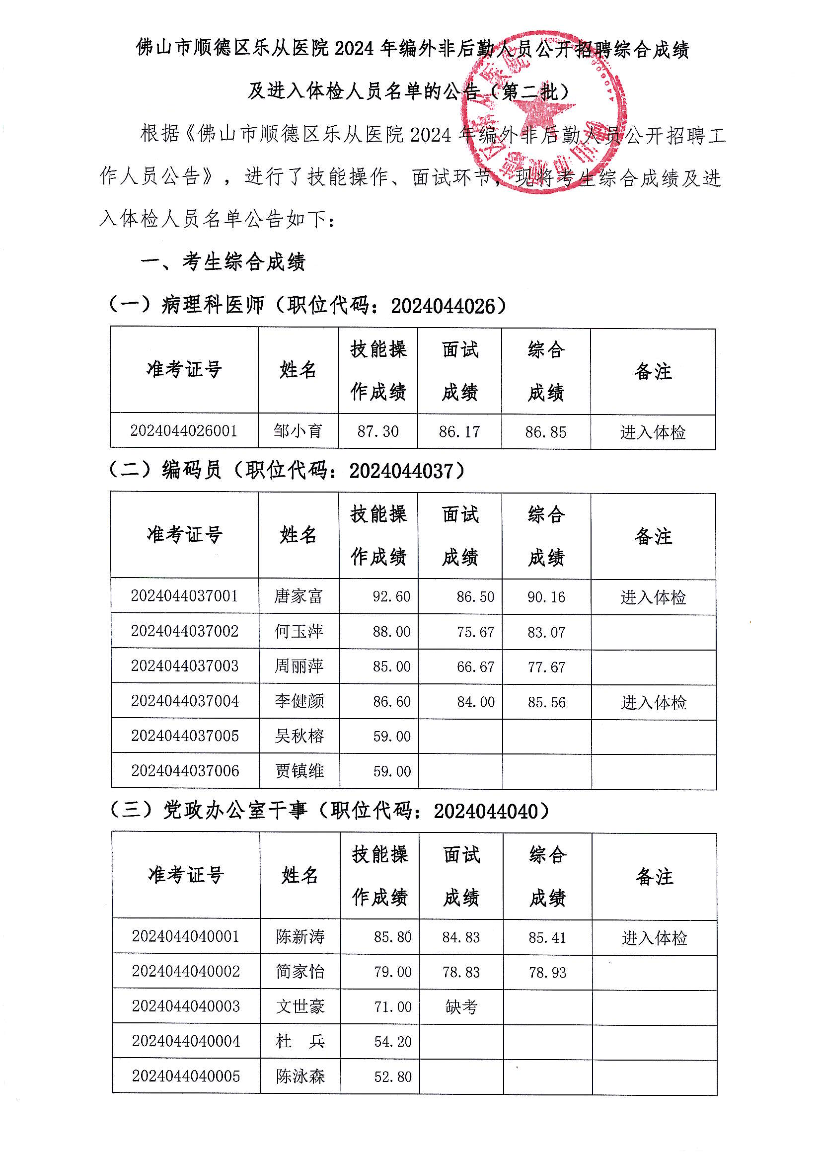 上一篇: 乐从医院2024年编外非后勤人员公开招聘综合成绩及进入体检人员名单的公告(第三批)