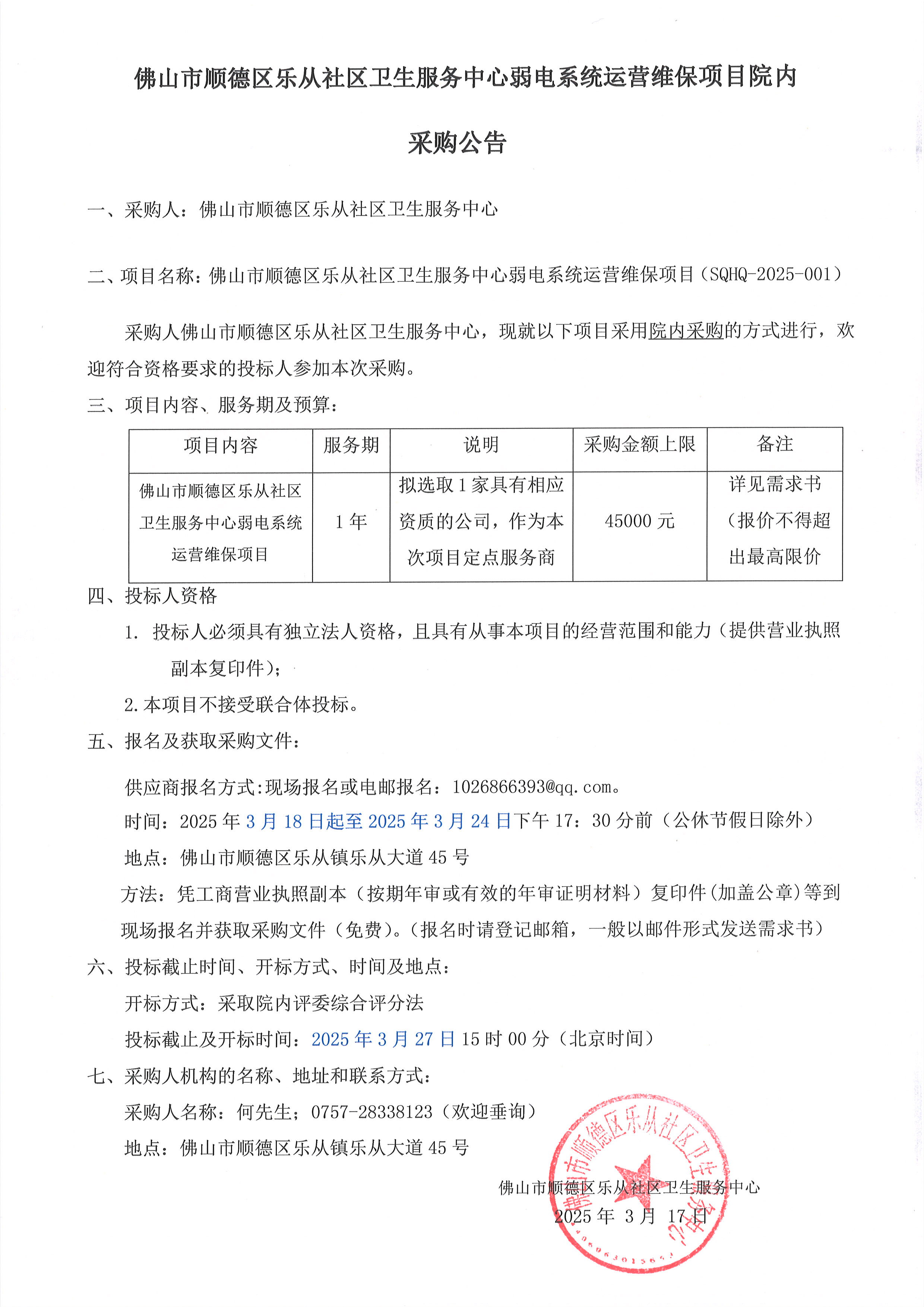 上一篇: 佛山市顺德区乐从社区卫生服务中心污水处理站日常运维服务项目的院内采购公告