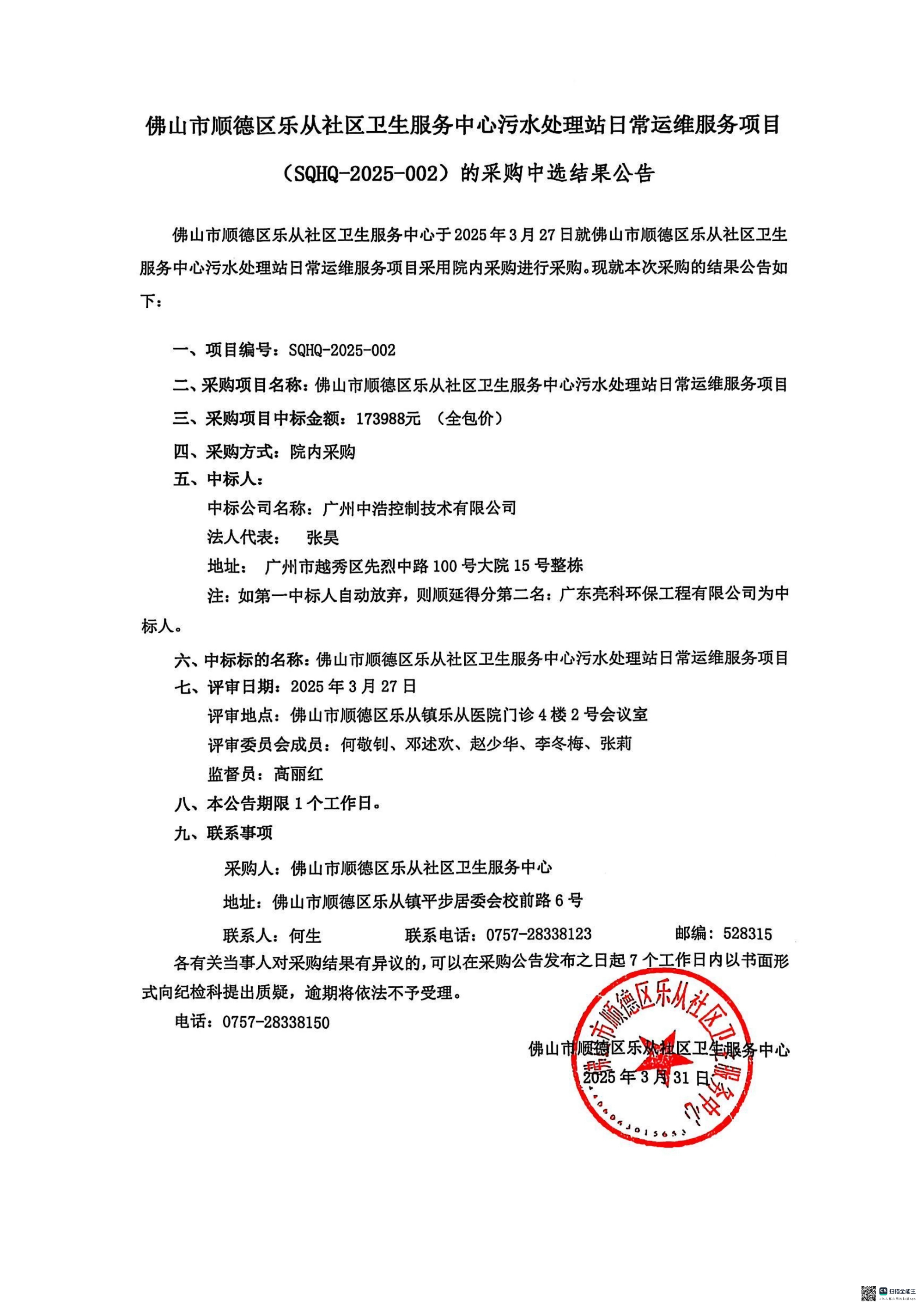 下一篇: 佛山市顺德区乐从社区卫生服务中心弱电系统运营维保项目(SQHQ-2025-001)的采购中选…