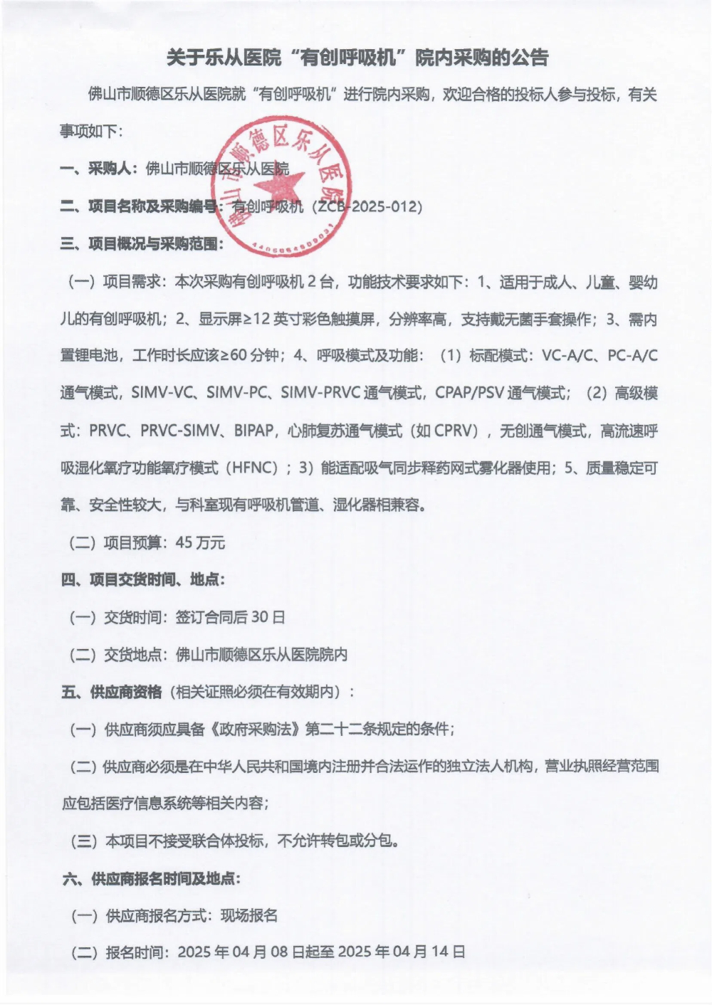 上一篇: 佛山市顺德区乐从医院血液透析机的院内采购公告