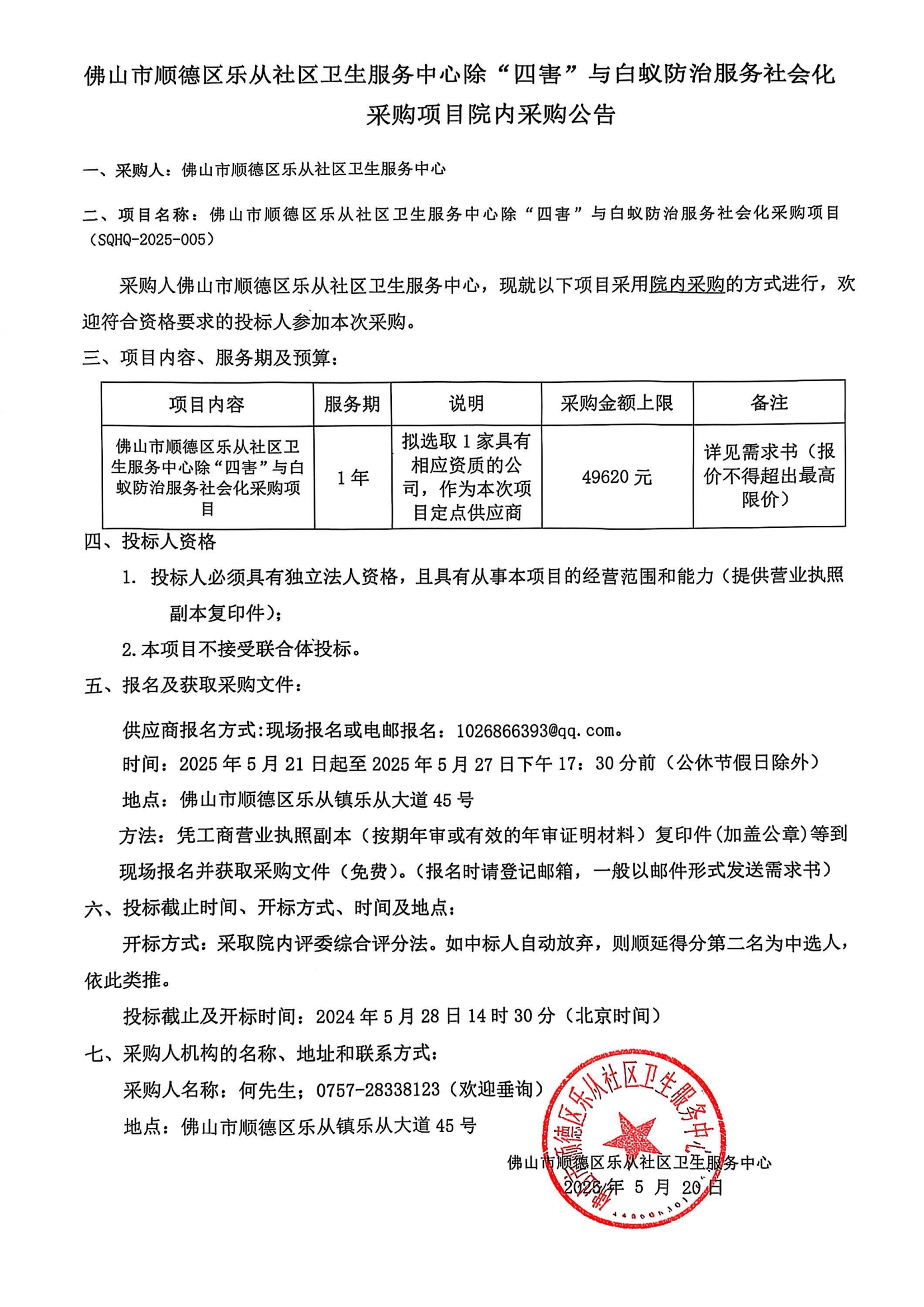 下一篇: 佛山市顺德区乐从社区卫生服务中心消防设施维修、保养服务项目的院内采购公告